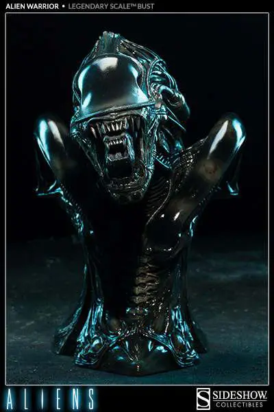 Sideshow Collectibles is thrilled to present the Alien Warrior Legendary Scale™ Bust. Our artisans have replicated one of Hollywood's most memorable monsters to exacting standards, and at roughly one-half scale, this miniature xenomorph is no less intimidating than its life size counterpart. Hand-finished with a wealth of fine detail and signature glossy-wet appearance, the Legendary Scale™ Bust accentuates the distinct exo-skeletal sinewy ridges, and brown coloration of the warrior as seen in James Cameron's 1986 sequel. Incorporated into the base of the bust is a relief design of an Alien egg and facehugger - a special nod to the rich film lore of the Aliens universe. With terrifying inner jaws exposed, the eerie Alien Warrior Legendary Scale™ Bust is so lifelike you can almost hear it's menacing hiss - think twice before getting too close!