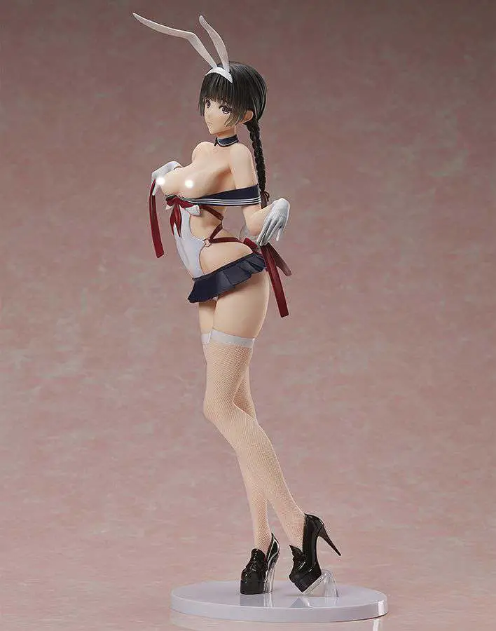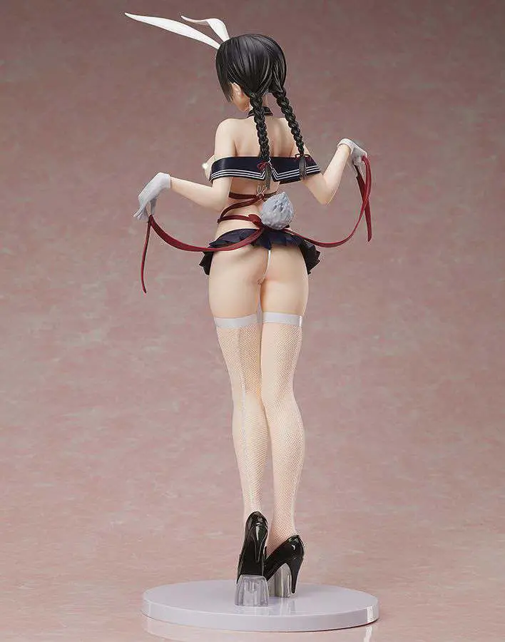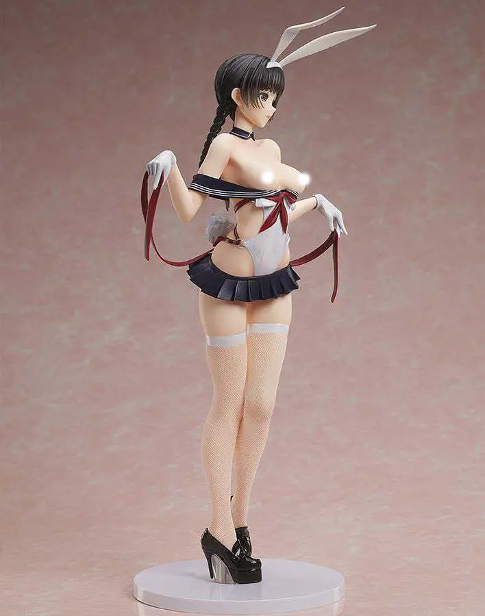 Her outfit is an amalgamation of a bunny suit and a school uniform that accentuates her gorgeous body line, and her despondent pose as she holds out the ribbons creates an air of elegance from every angle.