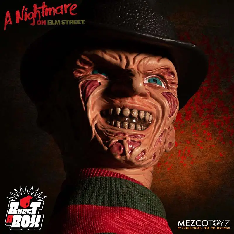 The A Nightmare on Elm Street Burst-A-Box features Freddy Krueger – the dream-haunting Elm Street slasher.