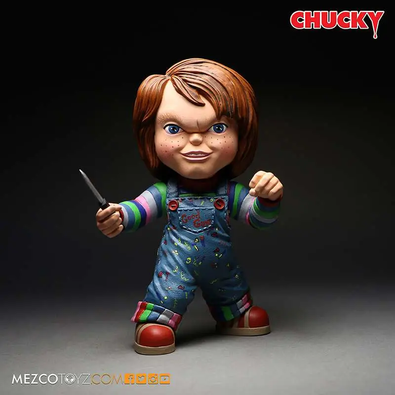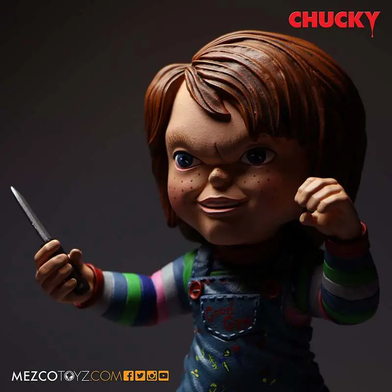 The award-winning designer team at Mezco have created an all-new sculpture that not only captures the look of Chucky, but the very essence of his menace. Every detail has been captured; from his classic coveralls to the unique imprint of the soles on his sneakers. From his glistening, insane eyes, and his sneering lips, to his shocking red hair, this is Chucky at his most iconic.  He’s not fully human, but he is fully insane!