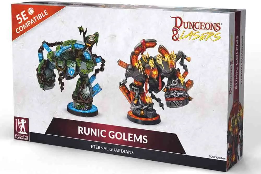 Contenu : 1x Golem Runique Temple Ancien, 1x Golem Runique Forêt - grands modèles - hauteur 110mm et 120mm sur socles de 50 mm