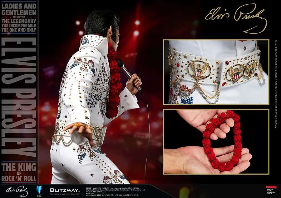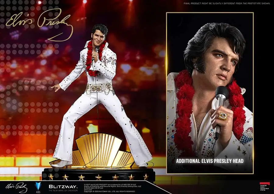 Blitzway is honored to officially present a quarter-sized statue of Elvis Presley, who lives more than 40 years after his death as an eternal cultural hero as the first rock star in pop history and a giant in pop music history!