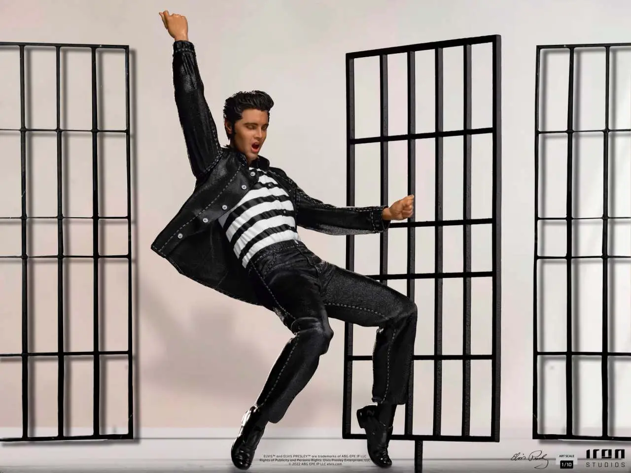 On tiptoe, in one of his most memorable performances, the legendary "King of Rock" with his unmistakable dance moves, brings all his energy and enthusiasm as at the beginning of his career. His most rebellious, rock'n'roll phase, in music and theaters, now immortalized by Iron Studios in the statue "Elvis Presley Jailhouse Rock - Art Scale 1/10 - Elvis Presley", inspired by an anthological scene from a dance choreographed by Elvis himself, and considered by many to be one of the first music videos in rock history