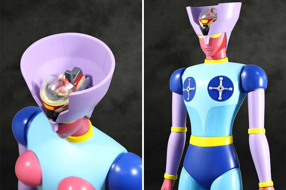 Evolution Toy brings us their next Grand Sofvi Bigsize Model from "Mazinger Z" - the female robot Diana A! Not only does she feature an impeccable size, but she's also made in the same size as the GABM series' Mazinger Z and the GSBM series' Boss Borot and Afrodai A so you can display them together. The Scarlet Machine has been formed to the head to create the cockpit and pilot.