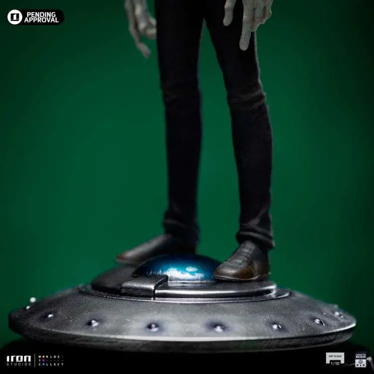 Feared for the belief in the testimony of those who encountered them and claimed that their race feeds on the life energy radiating from the human body, and that they possess no kind of feelings or emotions, the slender humanoid with a bulbous head stands on a base shaped like a Flying Saucer, something seen and described by many people from different parts of the planet for many years, which gave rise to the term UFO, Unidentified Flying Object, believed by many to be a spacecraft of extraterrestrial origin. Described by people around the world in cases of abduction, Iron Studios bring the statue “Grey Alien - I Want to Believe - Art Scale 1/10”, the first statue of the new I Want to Believe series, inspired by the tales of mythological beings existing in popular imagination and ufological folklore.