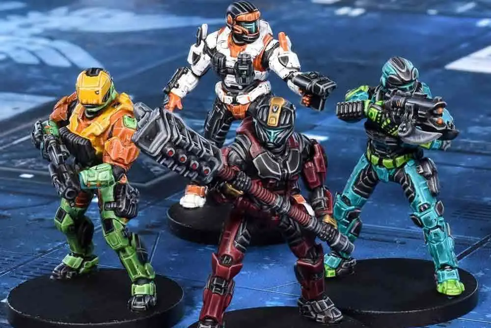 CONTENU : 4 figurines de Spartan ; Cartes de jeu Spartan