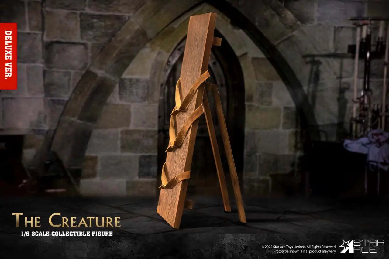 The deluxe version also features a two-sided lab wall backdrop made of Polystone and a standable lab table for displaying the Creature.