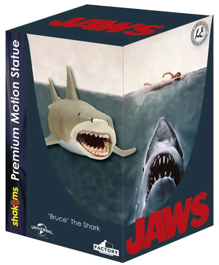 This Limited Edition Premium Motion format statue is designed to match the ‘Bruce’ filming models seen on screen using the original construction plans as reference. Crafted from heavyweight polyresin and hand painted the integrated, non-electronic motion feature brings the piece to life and creates the illusion of the shark swimming. Each statue is 7.5” long and comes packaged in a full color presentation box.