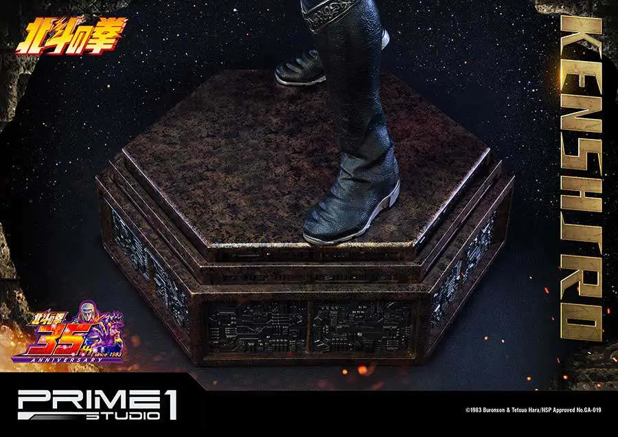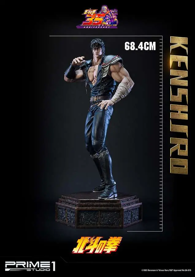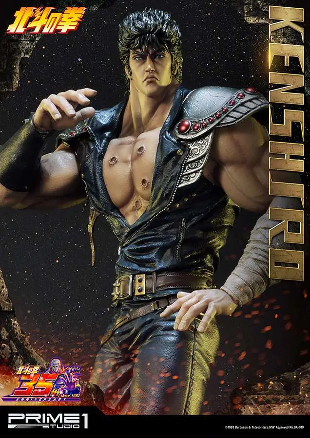 Prime 1 Studio is proud to present 1/4 scale PMFOTNS-01: Kenshiro from Fist of the North Star (Hokuto no Ken). Kenshiro is a fictional character and the protagonist of the Fist of the North Star manga series created by Tetsuo Hara and Buronson. Kenshiro’s character design was inspired by the martial artist Bruce Lee and the character Max Rockatansky from the Mad Max film series. In the story, Kenshiro also known as Ken is the 64th successor of the Hokuto Shinken style of martial arts, and the greatest of all of them in its 1800 years. He was sent to the mainland as a baby with his adoptive siblings Raoh and Toki. His famous catchphrase “You are already dead.” (Omae wa mou shindeiru) is delivered to many of his opponent he has killed before they even know it.