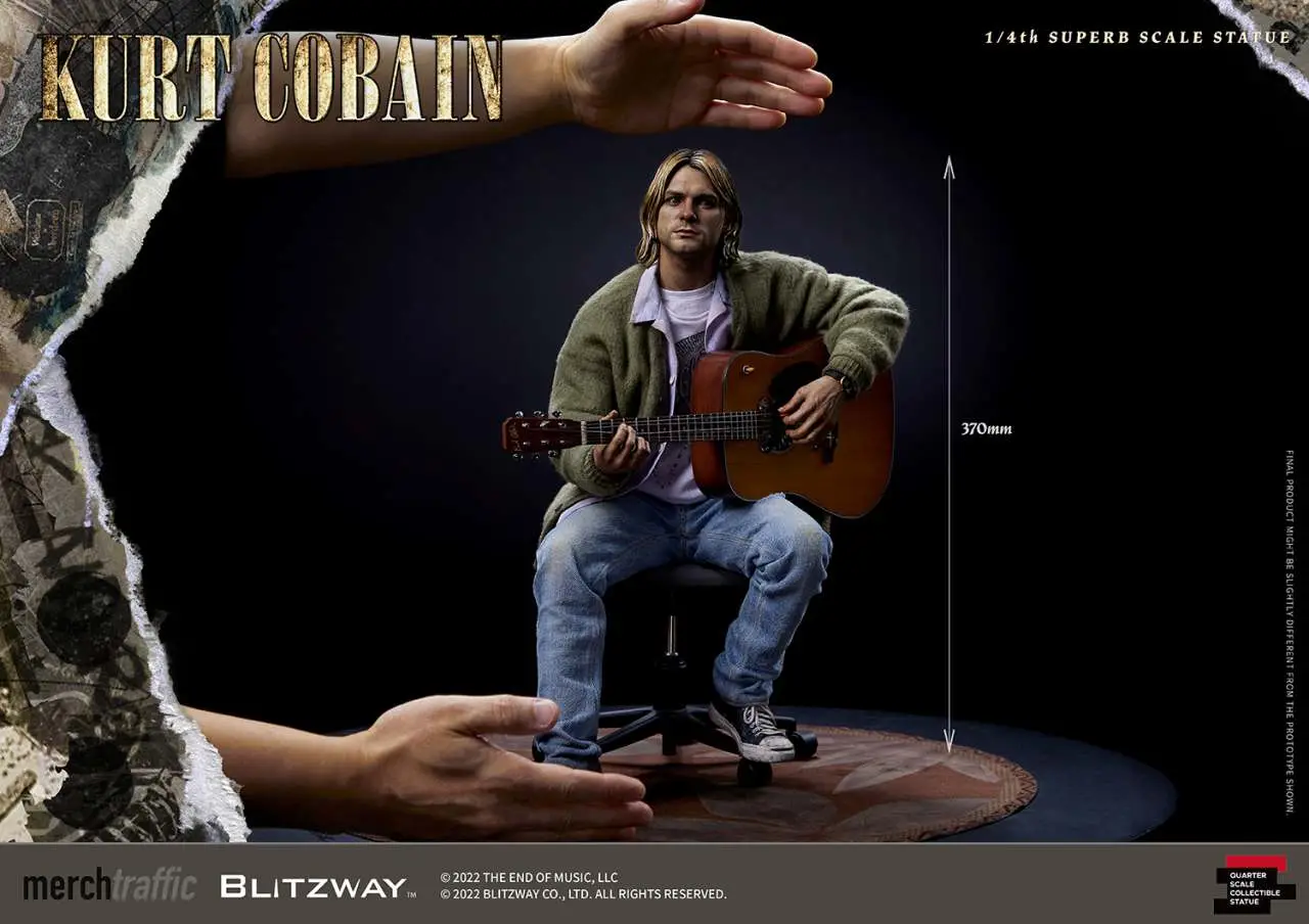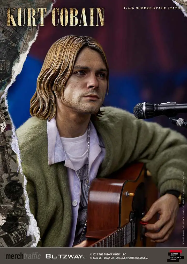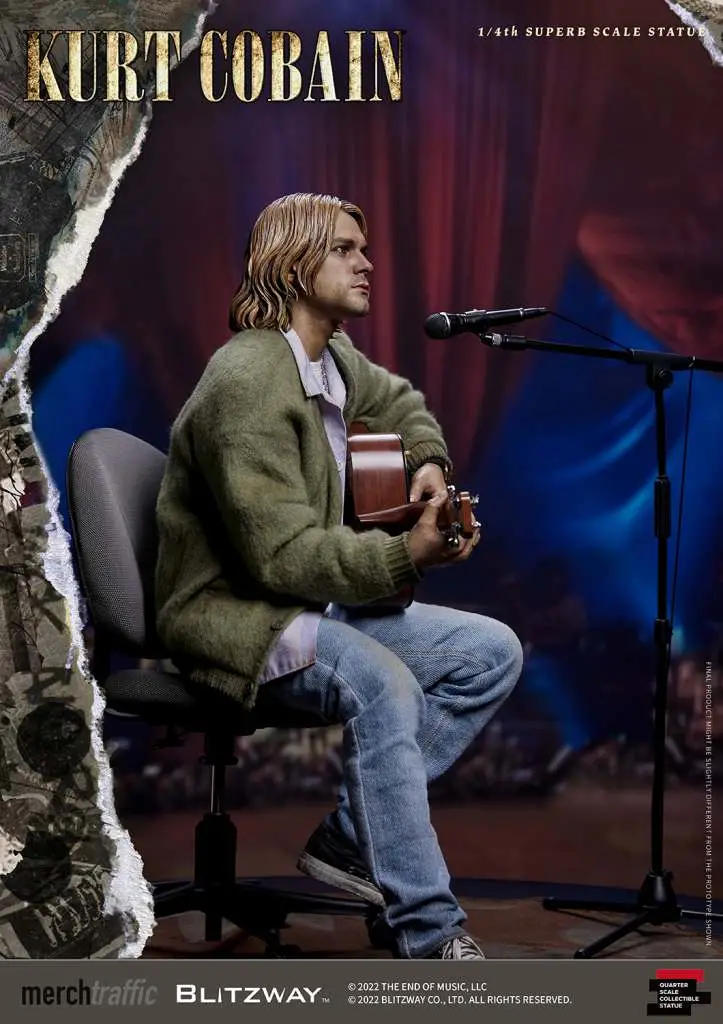 Tangled blond hair, iconic grunge style old sweater, the gloomy sentiment behind the good-looking… BLITZWAY presents the new 1/4 Super Scale Statue, Kurt Cobain.