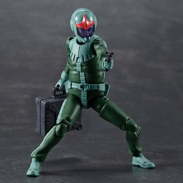 Leading the pack, Zeon Army Standard Infantry 06, Char Aznable figure comes with various optional parts including a Navan Type 62 pistol, rifle, mug, notebook and an alternate head part without his helmet.