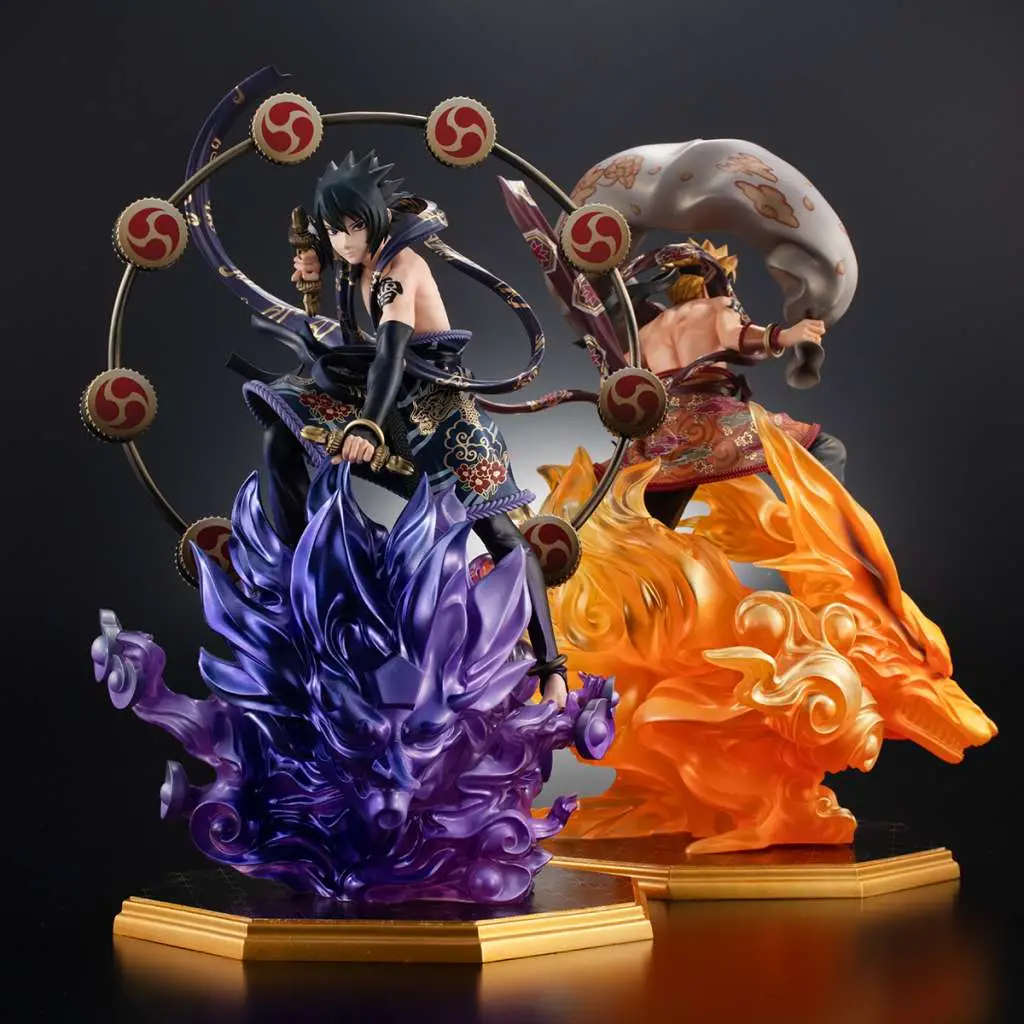 In this new release, Naruto and Sasuke are portrayed with the typical features of the japanese gods of Thunder and Wind