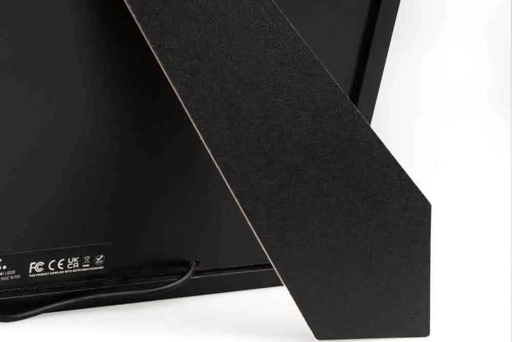 Réalisé en MDF et acrylique. La structure est dotée d’un support arrière. Comprend plusieurs modes d’éclairage : 5 niveaux d’intensité et 3 températures de lumière (chaude, neutre et froide). Équipé de 3 boutons de commande situés sur le câble. Fonctionne avec un câble USB Type-C non amovible inclus — entrée 5V DC 1A. Dimensions : 20 x 5 x 28 cm.