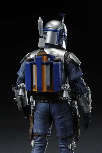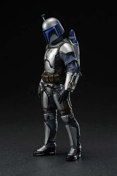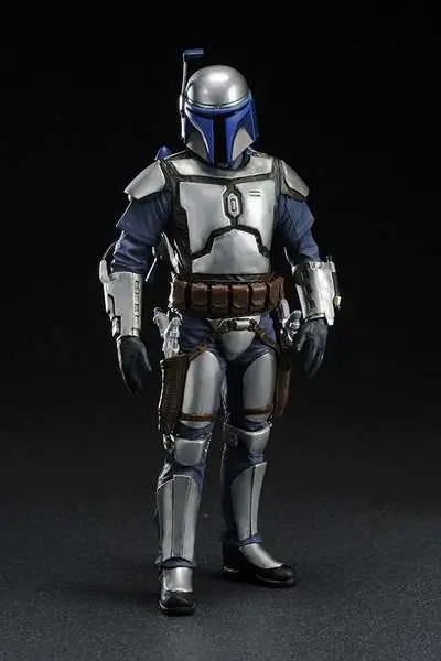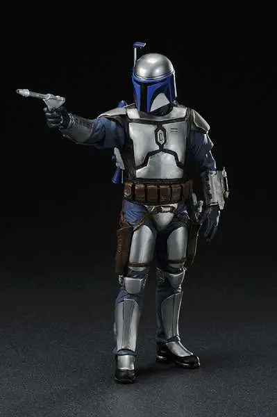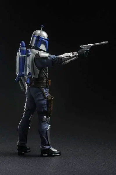 Kotobukiya proudly presents the newest release in their line of ARTFX+ statues inspired by the STAR WARS saga: Jango Fett. This highly detailed 1/10th scale sculpt features two interchangeable backpacks. Display Jango as he appeared on Kamino or during the battle of Geonosis! Features include interchangeable arm parts to allow for different posing optins, as well as magnets in the feet for extra stability on the included base.