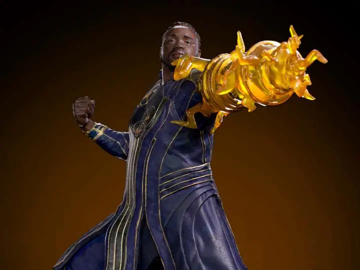 With a vortex of cosmic energy emerging from his arm, although he prefers to use his huge ingenious intellect to combat his enemies, he can also be an efficient and capable fighter when armed with his powerful rings of force. His creative mind helped him to boost humanity in technology, but he has always kept his brilliant mind hidden in the shadows as the creator of innovations such as the plow and the steam machine. Dressed in purple and silver armor to fight the Deviants, Iron Studios present the Phastos statue, with the most intelligent member of the Eternals’ team of thinkers.