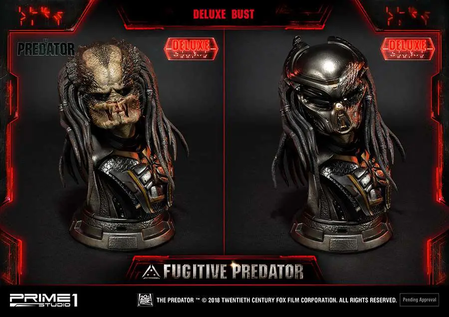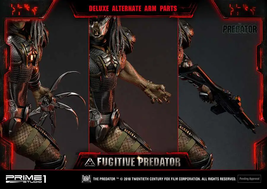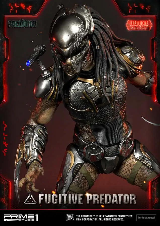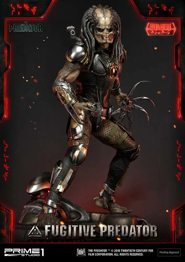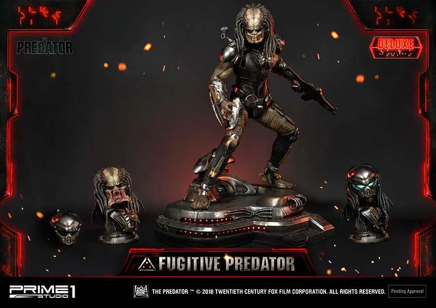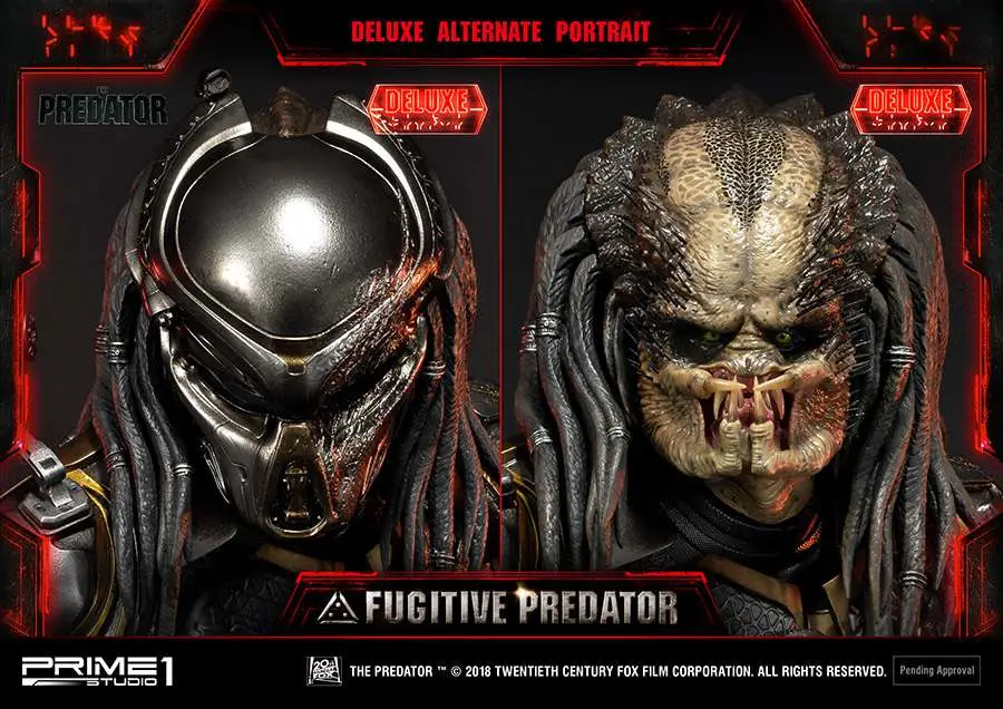 Prime 1 Studio is proud to present 1/4 scale PMTPR-01DX: Fugitive Predator Deluxe version from The Predator (2018 Film). Predators have been genetically evolving themselves to be stronger, smarter and more lethal than ever before. When a young boy accidentally activates a mysterious alien device and becomes the target of these enhanced Predators, only his father and the most unlikely ragtag band of crazy ex-military agents can save him – and the human race from obliteration. From Shane Black, the Director of Iron Man 3, comes the high-octane action thriller that takes the original 80’s cult classic to the next level. This is the ultimate statue which included several switchable parts and portraits. A must have statue for all The Predator fans!