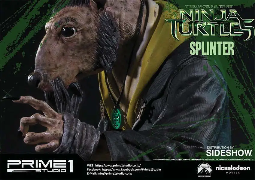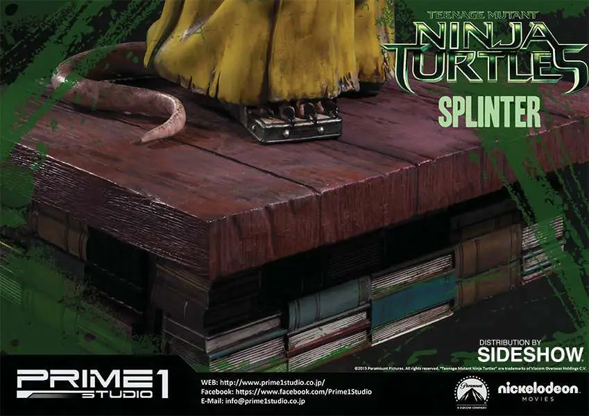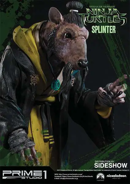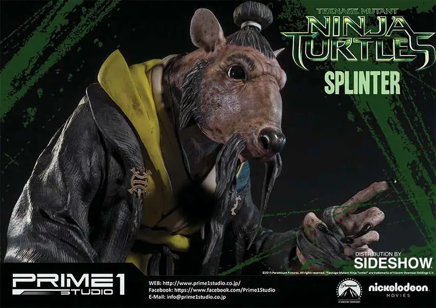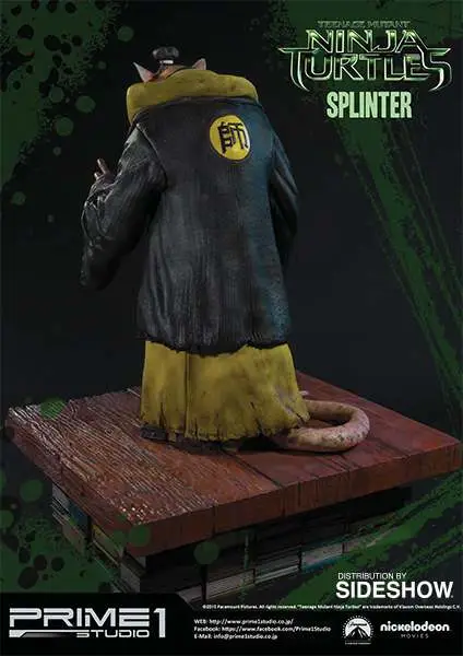 Sideshow Collectibles and Prime 1 Studio are proud to present the Splinter Polystone Statue from Teenage Mutant Ninja Turtles (2014). Originally an experimental lab rat exposed to ninja sensory training. Splinter was injected with a DNA-infused mutagen that gave him sentience, thoughts and a soul. After an unfortunate event at the lab, Splinter and four unlikely box turtles suddenly found themselves building their new home in the sewers. Splinter took on a fatherly role, training the turtles to become ninja heroes