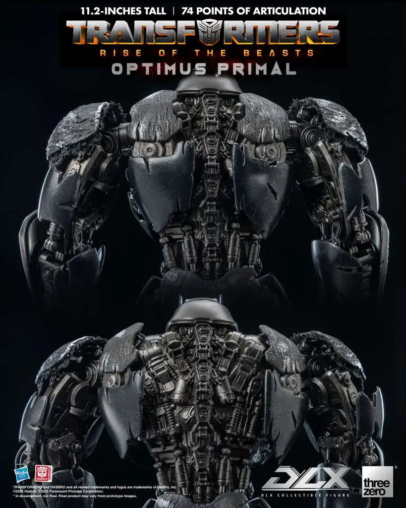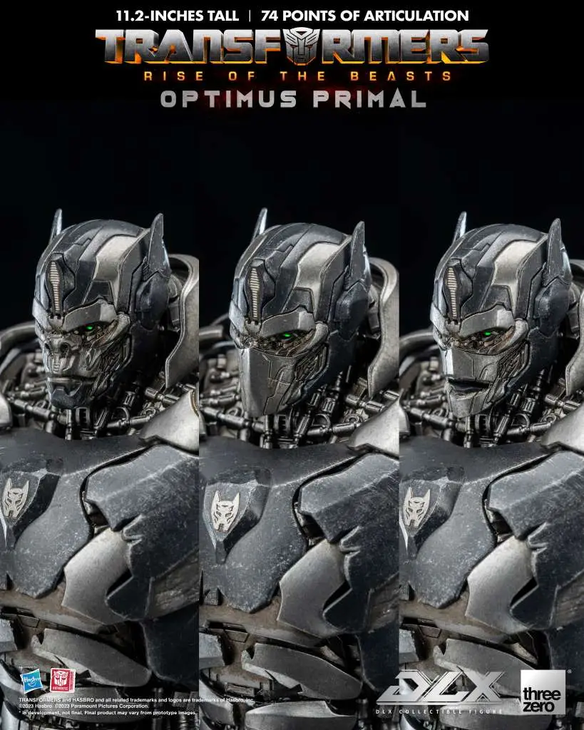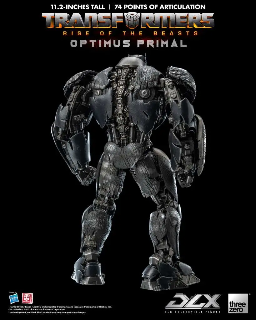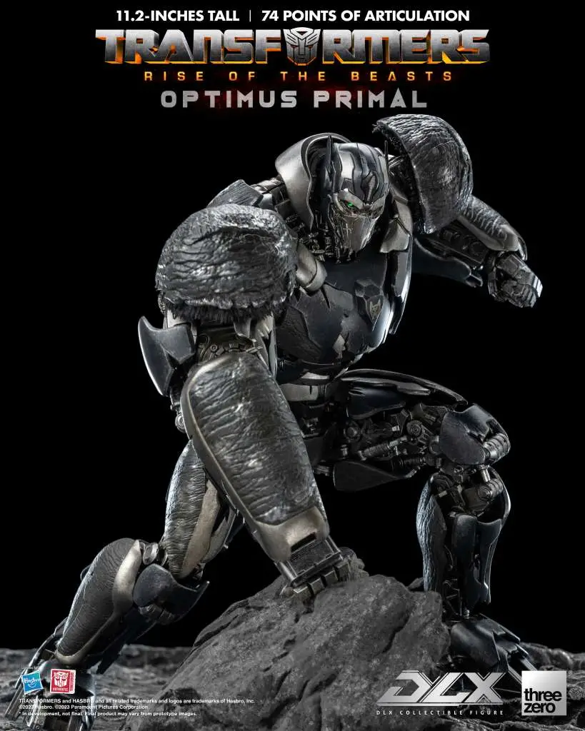 Standing at approximately 11.2" (28.5 cm) tall, the Transformers: Rise of the Beasts DLX Optimus Primal collectible figure captures the essence of the iconic leader of the Maximals as he appears in the film. Transformers: Rise of the Beasts DLX Optimus Primal takes the honor of having the most points of articulation in the DLX collectible toy line with approximately 74 points of articulation! He contains various interlinking segments for the arm, leg, and body movements, this dynamic range of poseability allows you to recreate the epic moments and battle scenes from the movie. Designed with a die-cast metal frame that maximum levels of durability and stability. The detailed weathered paint application brings out his battle-worn appearance, showcasing the character's resilience and determination.