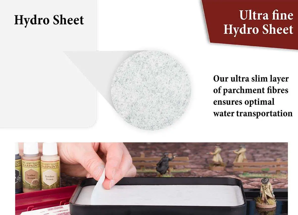 Hydro sheet membranes for perfect moisture level – Our Hydro Sheets for acrylic palette are designed specifically for allowing the ideal amount of water to seep into our acrylic Warpaints