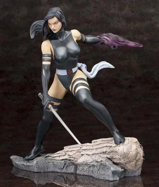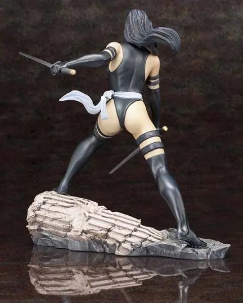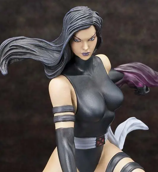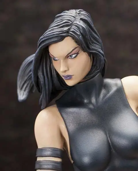 Kotobukiya presents an all-new Psylocke sculpted by Erick Sosa with the Marvel Comics Psylocke X-Force Outfit Fine Art Statue. Dressed in the black X-Force version of her ninja outfit, complete with Japanese tabi-style boots, Psylocke has never looked better. Includes an interchangeable parts for display with either her sword or a show of her mutant powers in her hands. Psylockes hair and sash float in an unseen breeze as she stands on a georama base.