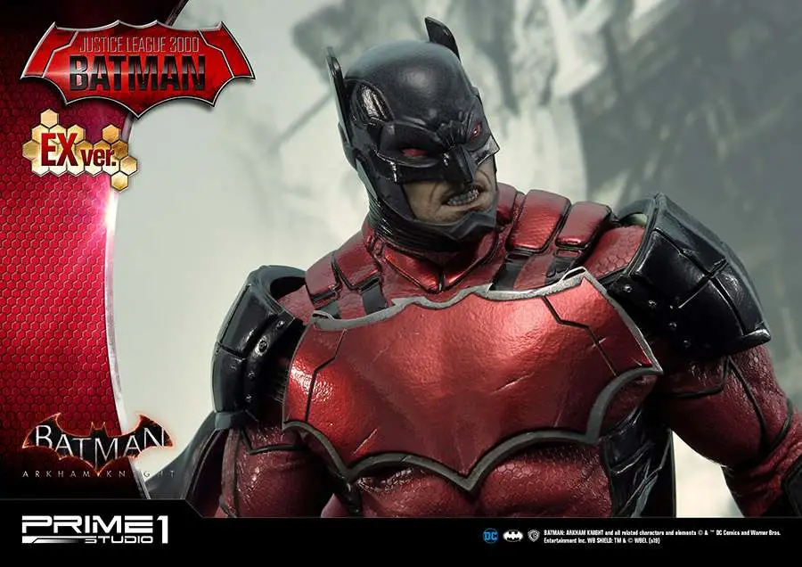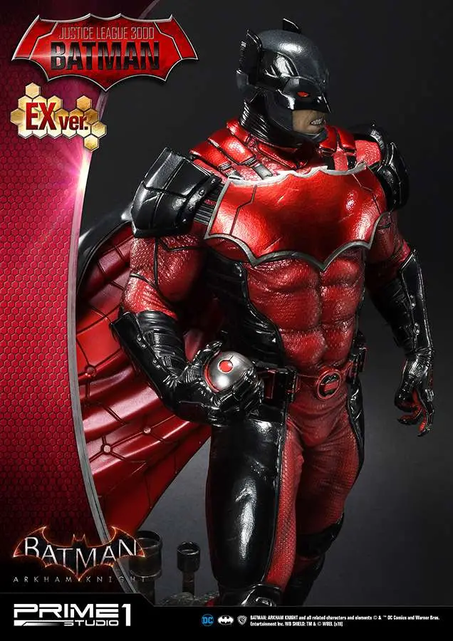Da Prime 1 Studio la statua in scala 1/5 di Batman da Justice League 3000, (Batman Arkham Knight videogame by Rocksteady Studios e Warner Bros. Interactive Entertaiment). Batman in costume rosso è stato riprodotto in resina con dettagli e colori estremamente curati, include parti intercambiabili e una particolare base scolpita. La statua misura 50cm e arriva in versione regular e versione exclusive.
