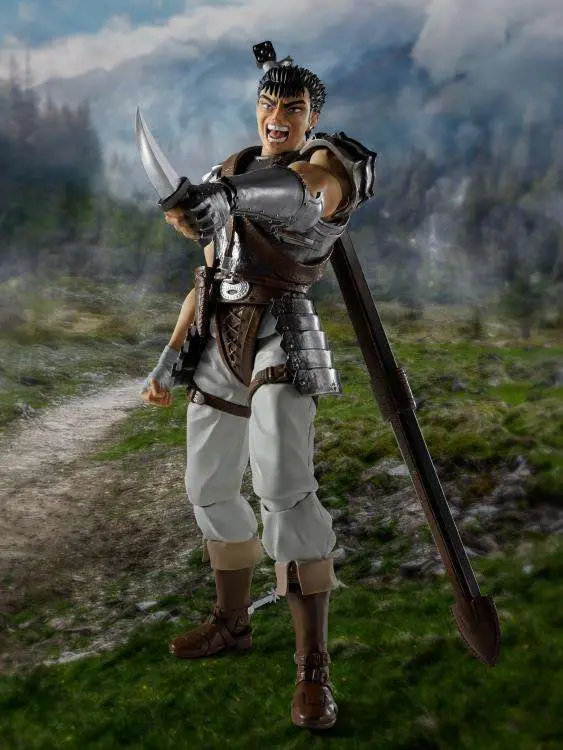 Dal famoso manga-anime dark fantasy “Berserk”, Guts alla saga “L'Eta' d'oro” è ora disponibile come action figure S.H.Figuarts. Sono incluse varie parti intercambiabili: diverse espressioni del viso, un elmetto che puo' essere aperto e chiuso, mani extra ed armi varie . Il suo mantello, dotato di un frame interno in fil di ferro, consente di creare qualsiasi posa desideriate.