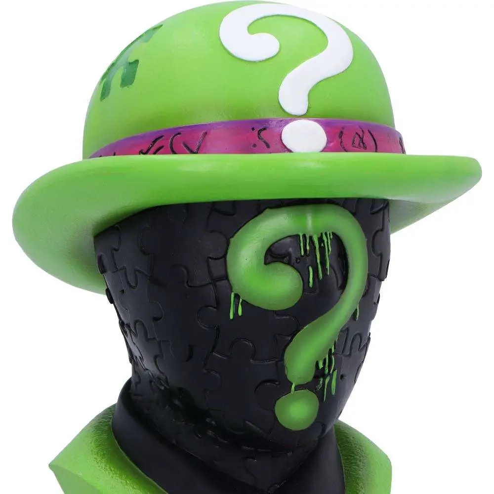 Conservate i vostri tesori o biscotti con stile e intrigo nella scatola con licenza ufficiale DC The Sphinx. Con l'iconico cappello verde e viola della Sfinge come coperchio e un audace punto interrogativo, questo pezzo cattura l'essenza dell'enigmatico supercriminale di Gotham.