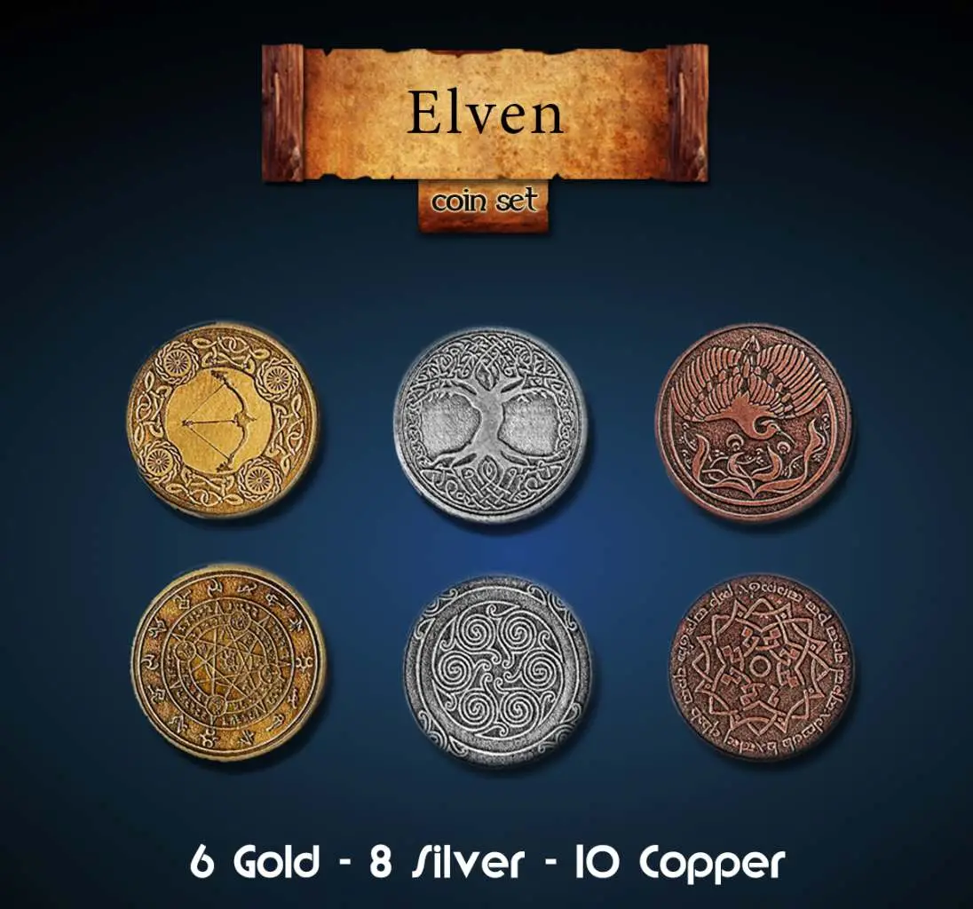 Arricchisci la tua esperienza di gioco con pesanti monete di metallo con design che si adattano al tuo mondo di gioco.