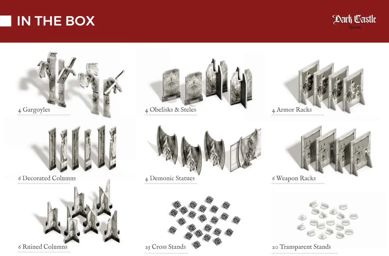 Dark Castle è l'espansione di Dungeon & Town che ti permette di costruire un intero castello comprensivo di mura, torri e accessori. Pienamente compatibile con tutte le parti di Dungeon & Town.