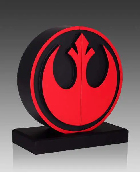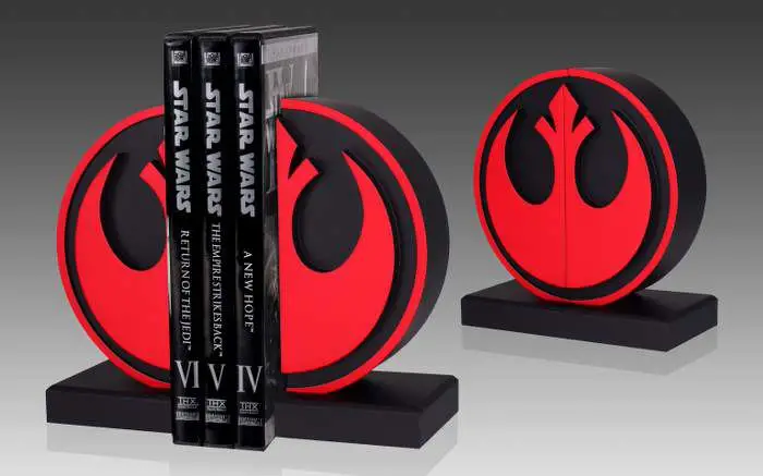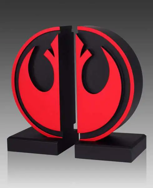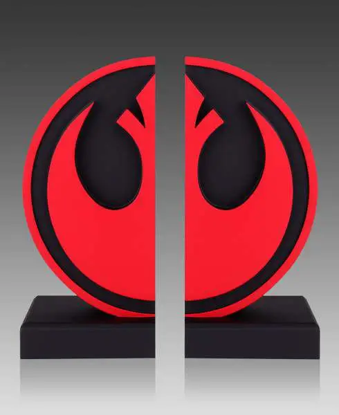 Se siete fans di Guerre Stellari non potete lasciarvi sfuggire questo set di fermalibri dedicati al simbolo dell’Alleanza Robelle! I due pezzi possono essere esposti uniti per mostrare il simbolo, oppure utilizzati separati come fermalibri. Edizione limitata e numerata con certificato di autenticità.