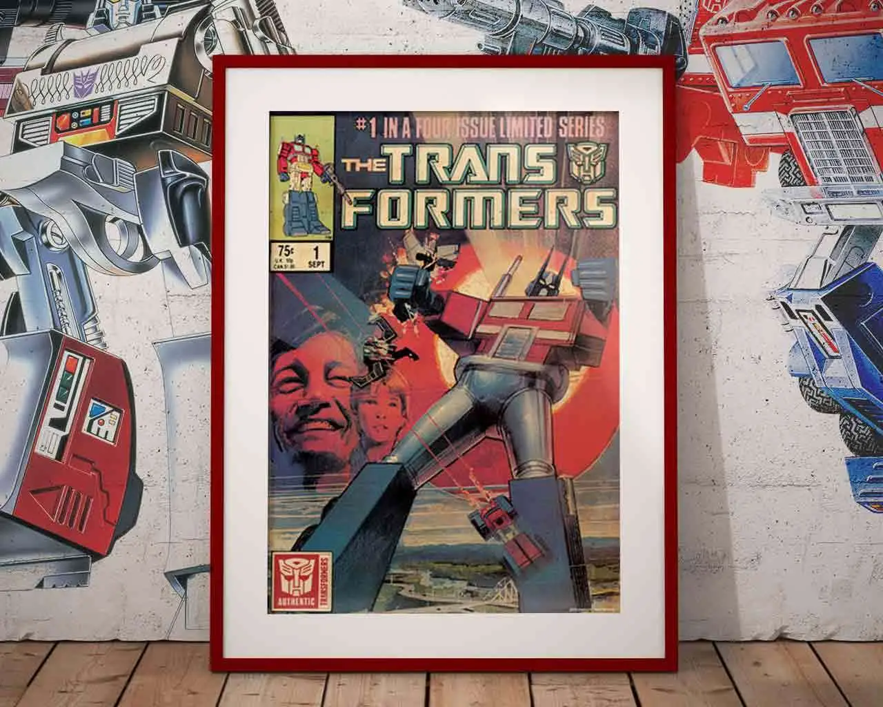 Nel raccontare la storia di come sono nati i Transformers e nel gettare le basi per tutta la tradizione che ne è seguita, la serie originale dei fumetti Transformers della Marvel è durata 80 numeri a partire dal 1984 e fino al 1991. Questa stampa artistica ricrea la copertina del primo numero, è in formato A3 (420 x 297 mm), è stampata su carta di alta qualità presso una delle più antiche tipografie del Regno Unito ed è limitata a soli 995 esemplari in tutto il mondo.